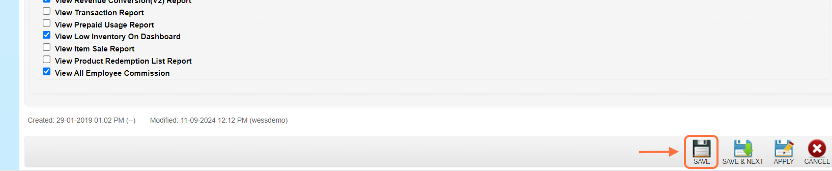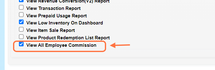 Step 5: Tick the checkbox “☑️” to select the “View All Employee Commission”.