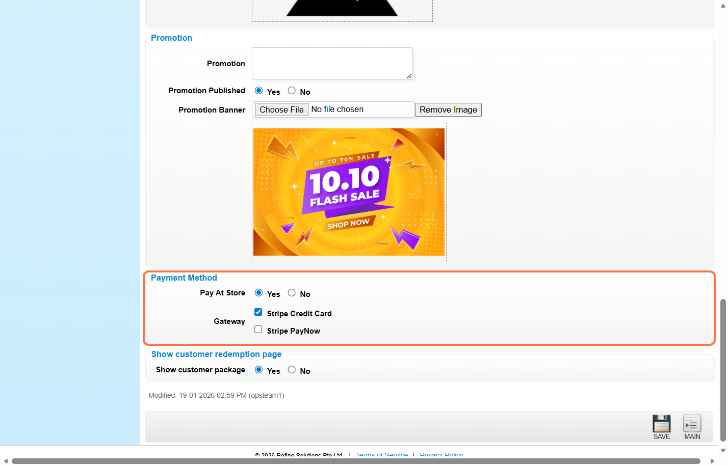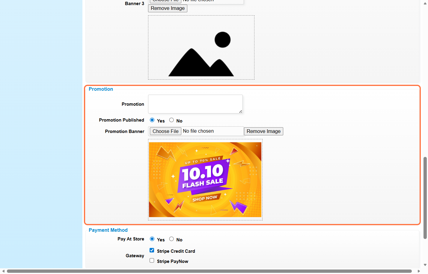 Step 6: You may fill in the promotion text, set “Promotion Published” to “Yes” or “No” and upload promotion banner if you have any.