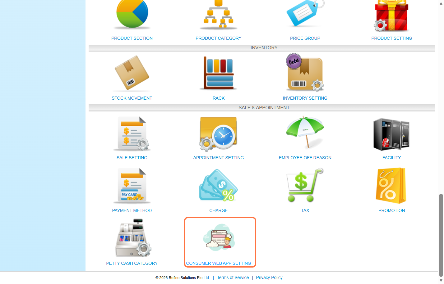 Step 2: Click “CONSUMER WEB APP SETTING”.