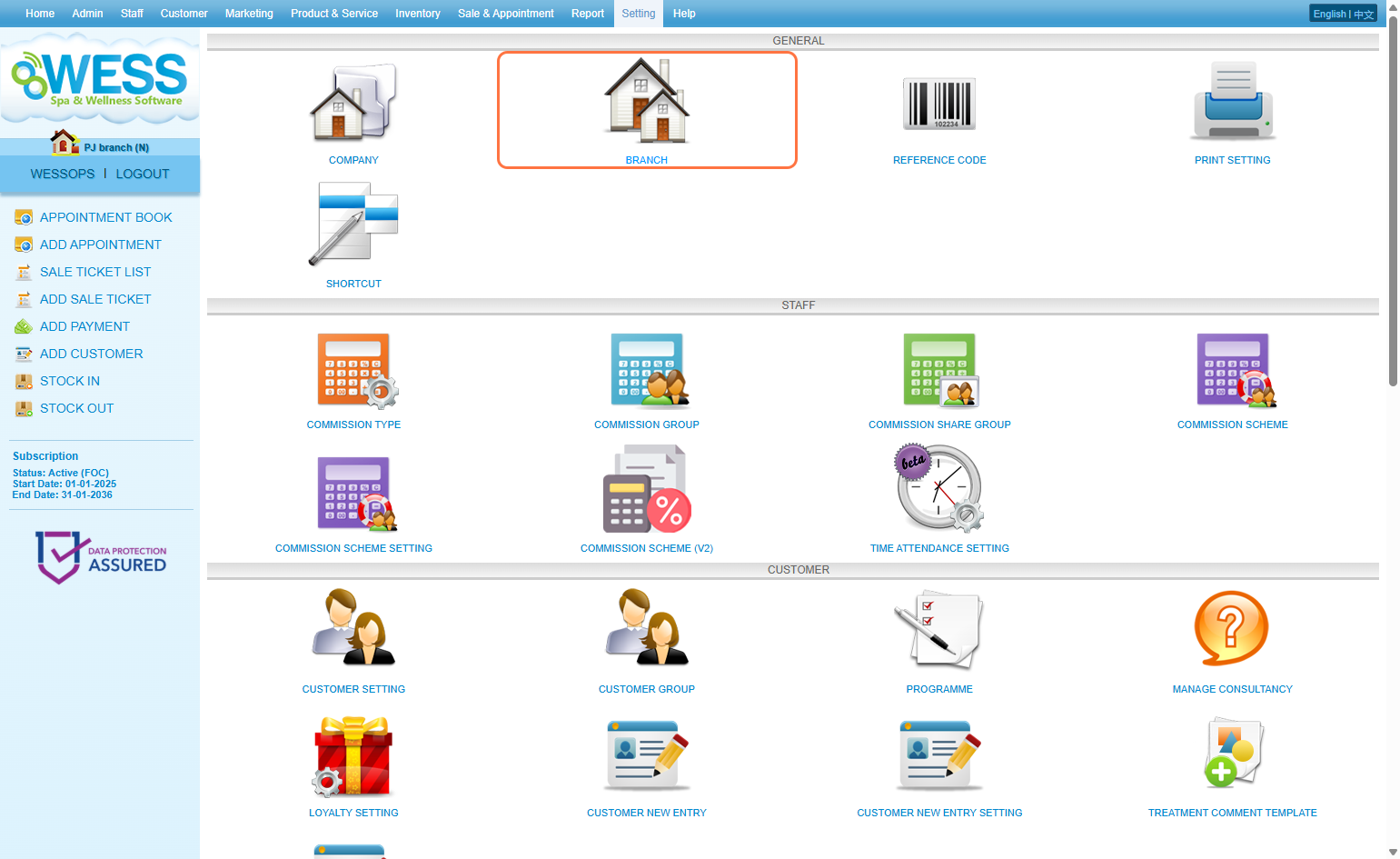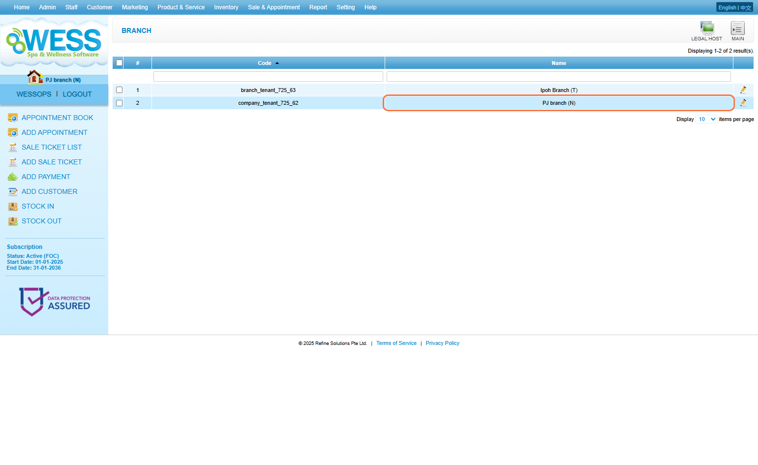 3. Select the current branch (branch that you are access now), for example PJ branch (N).