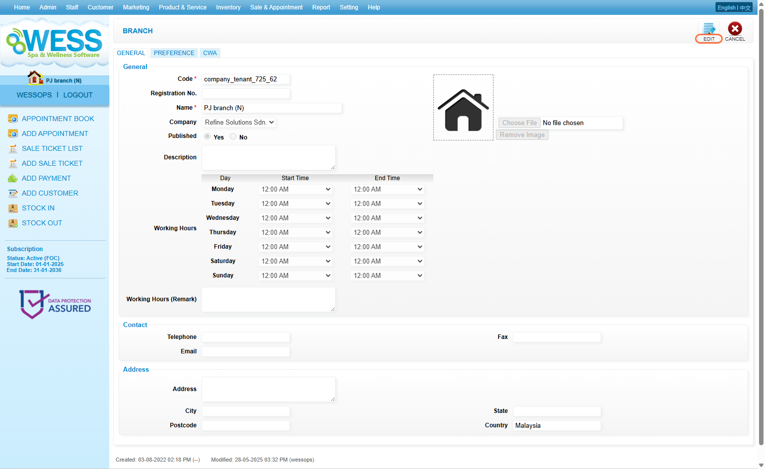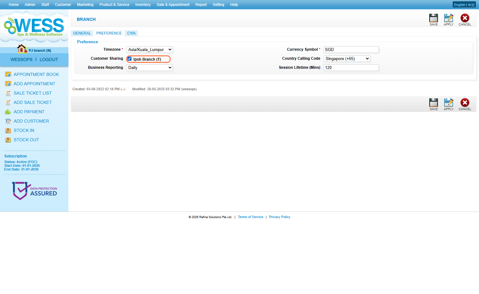 7. Click “SAVE”. *Note that only customers created in current branch will share to selected share branch.
